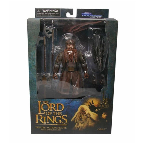Μια κυκλοφορία της Diamond Select Toys! Σχηματίστε τη Συντροφιά ! Η νέα επική σειρά φιγούρων δράσης του Άρχοντα των Δαχτυλιδιών ξεκινά με το αρχικό περίεργο ζευγάρι, το νάνο Gimli και το ξωτικό Legolas! Κάθε φιγούρα κλίμακας 7 ιντσών διαθέτει 16 σημεία άρθρωσης, λεπτομερή γλυπτική και πλήρη σειρά αξεσουάρ. Κάθε φιγούρα είναι συσκευασμένη σε ένα έγχρωμο κουτί παραθύρου με ετικέτα και κάθε φιγούρα συνοδεύεται από ένα κομμάτι του Σάουρον. Συλλέξτε ολόκληρη τη σειρά για να φτιάξετε τον κακό Σάουρον ύψους 33 εκατοστών! Η γλυπτική έχει πραγματοποιηθεί στα Gentle Giant Studios.