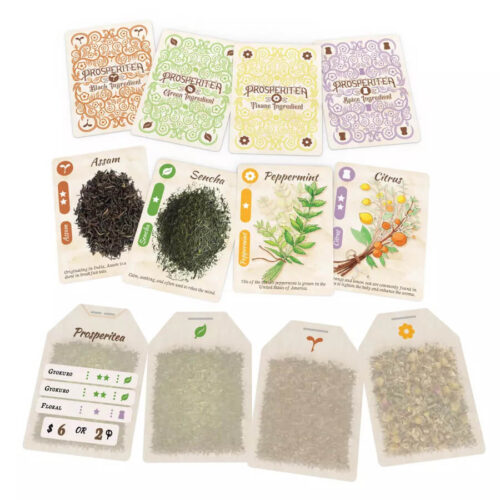 Στο Prosperitea, είστε ο ιδιοκτήτης ενός μικρού βιοτεχνικού καταστήματος τσαγιού σε μια τοπική γειτονιά. Όπως όλοι οι τεχνίτες, είστε υπερήφανοι για τη δεξιοτεχνία σας και προσπαθείτε να γίνετε το κατάστημα με το μεγαλύτερο κύρος στην πόλη. Θα προμηθεύεστε τα συστατικά και στη συνέχεια θα τα αναμειγνύετε σε μια μεγάλη ποικιλία τσαγιών για να ικανοποιήσετε τη ζήτηση της τοπικής αγοράς. Πουλήστε στο Prosperitea τα τσάγια σας για άμεσα κέρδη ώστε να εξασφαλίσετε περισσότερα συστατικά ή εκθέστε τα στη βιτρίνα του καταστήματός σας για κύρος. Το κατάστημα με το μεγαλύτερο κύρος στο τέλος του παιχνιδιού είναι ο νικητής!