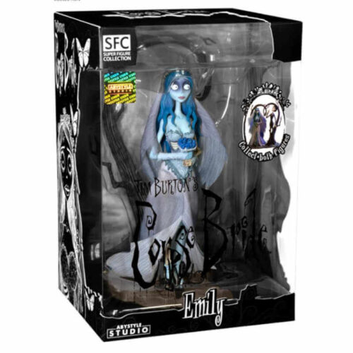 Πιστεύουμε ότι θα ερωτευτείτε την Emily SFC Figure του ABYstyle Studio! Παρουσιάζει τη Νεκρή Νύφη πάνω σε μια πέτρινη βάση με το μπλε μπουκέτο της στο χέρι, ενώ για το πέπλο και το νυφικό της έχει χρησιμοποιηθεί πραγματικό ύφασμα. Ένα τέλειο αναμνηστικό για τους οπαδούς του Tim Burton.