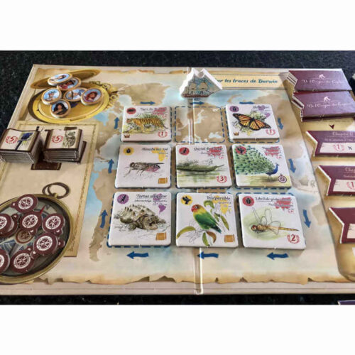 Στο In the Footsteps of Darwin, οι παίκτες είναι νεαροί φυσιοδίφες που μόλις έφτασαν στο Beagle για να βοηθήσουν τον Κάρολο Δαρβίνο να ολοκληρώσει το βιβλίο του On the Origin of Species. Κατά τη διάρκεια αυτού του ταξιδιού, θα μελετήσετε ζώα, θα πραγματοποιήσετε χαρτογραφικές έρευνες, θα δημοσιεύσετε τα ευρήματά σας και θα αναπτύξετε θεωρίες. Ξεκινώντας με τον φυσιοδίφη που ελέγχει το κουπόνι του Δαρβίνου, οι φυσιοδίφες εναλλάσσονται με τη φορά των δεικτών του ρολογιού, εκτελώντας τα εξής δύο βήματα με τη σειρά: