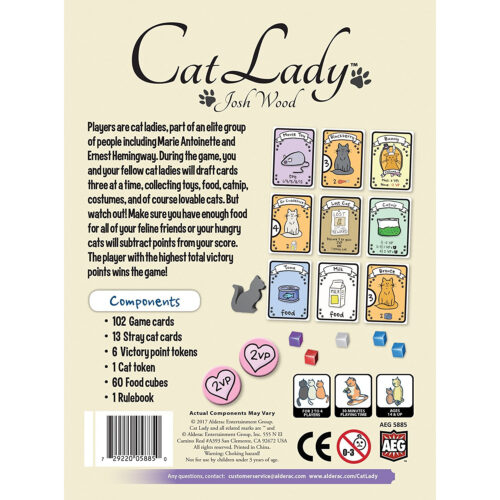 Στο Cat Lady, οι παίκτες είναι κυρίες γάτες, μέρος μιας ελίτ ομάδας ανθρώπων όπως η Marie Antoinette και ο Ernest Hemingway. Κατά τη διάρκεια του παιχνιδιού, εσείς και οι συνάδελφοι γάτες σας θα μοιραστείτε κάρτες, τρεις κάθε φορά, συλλέγοντας παιχνίδια, φαγητό, κοστούμια και φυσικά αξιαγάπητες γάτες. Αλλά προσέξτε! Βεβαιωθείτε ότι έχετε αρκετό φαγητό για όλους τους φίλους της γάτας σας αλλιώς οι πεινασμένες γάτες σας θα αφαιρέσουν πόντους από τη βαθμολογία σας. Ο παίκτης με τους περισσότερους πόντους κερδίζει το παιχνίδι!