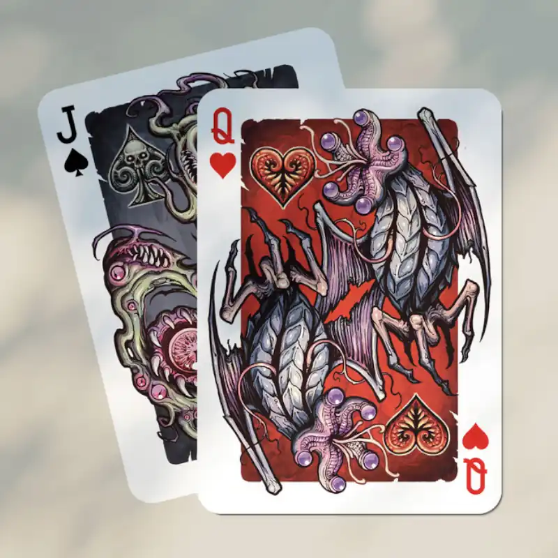 Η Bicycle Cthulhu Playing Cards είναι μια μοναδική συλλεκτική τράπουλα ποκερ εμπνευσμένη από το εμβληματικό Cthulhu Mythos του H.P. Lovecraft. Δημιουργημένη από τον ταλαντούχο tattoo artist Matías González, αυτή η πολυτελής τράπουλα αποτυπώνει με εντυπωσιακό τρόπο πλάσματα όπως ο Cthulhu, Dagon, Nyarlathotep, Shoggoth και άλλες μυθικές οντότητες. Κάθε φύλλο διαθέτει αποκλειστικό art design, custom Jokers και πρωτότυπα court cards που την κάνουν πραγματικό έργο τέχνης.