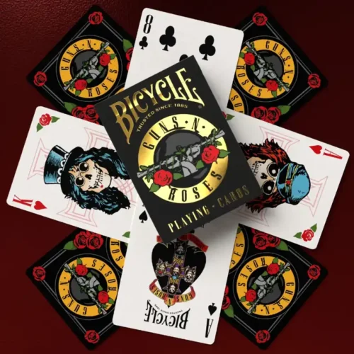 Η Bicycle Guns N’ Roses Playing Cards είναι μια μοναδική συλλεκτική τράπουλα πόκερ που αποτυπώνει την αυθεντική rock n’ roll ενέργεια του θρυλικού συγκροτήματος Guns N’ Roses. Εμπνευσμένη από το διάσημο άλμπουμ Appetite for Destruction, η Bicycle Guns N’ Roses Playing Cards φέρνει την iconic αισθητική των GN’R κατευθείαν στο τραπέζι σου, συνδυάζοντας premium ποιότητα και εντυπωσιακό design.