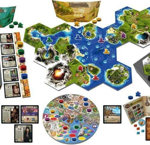 Each player embodies an explorer and his team who have been sent by a European nation in order to discover, colonize and exploit the archipelagos. These missions must be carried out in a diplomatic manner, responding both to the needs of the local population and to the demands of the continent. So you must respect the archipelago and its indigenous people, always though under the risk of seeing the natives revolt. The balance of the archipelago will depend on each person's willingness to turn these islands into happy and productive colonies or, conversely, to exploit their resources and the locals in a provocative way, ultimately ending in chaos and revolution.
