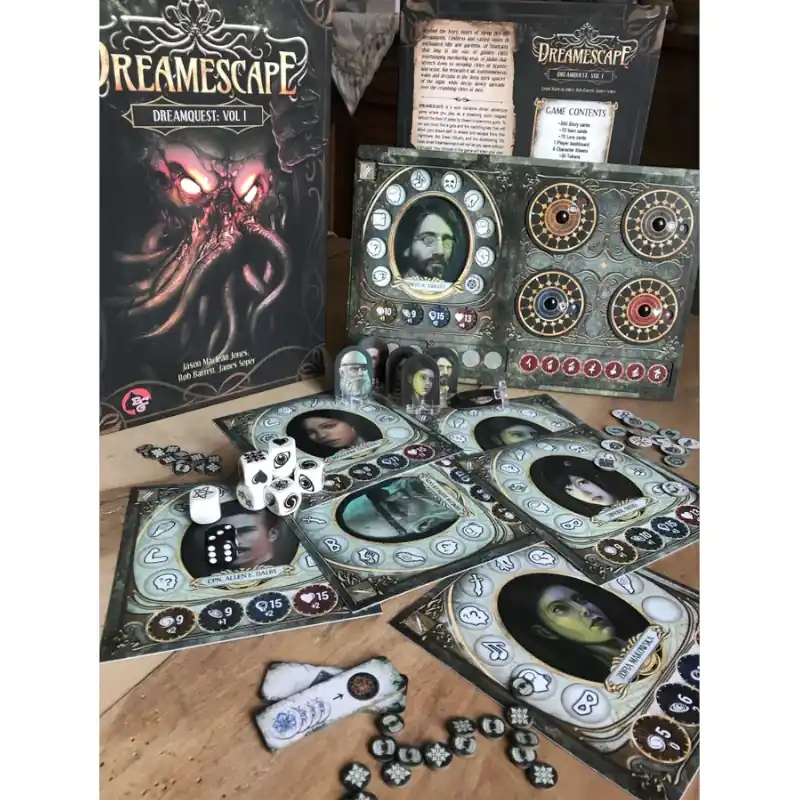 The Dreamescape board game combines tabletop horror, narrative adventure gameplay, psychological survival and paranoid RPG storytelling in a nightmarish, replayable universe. Ideal for lovers of Lovecraft, campaign games and stories of mystery and paranoia.