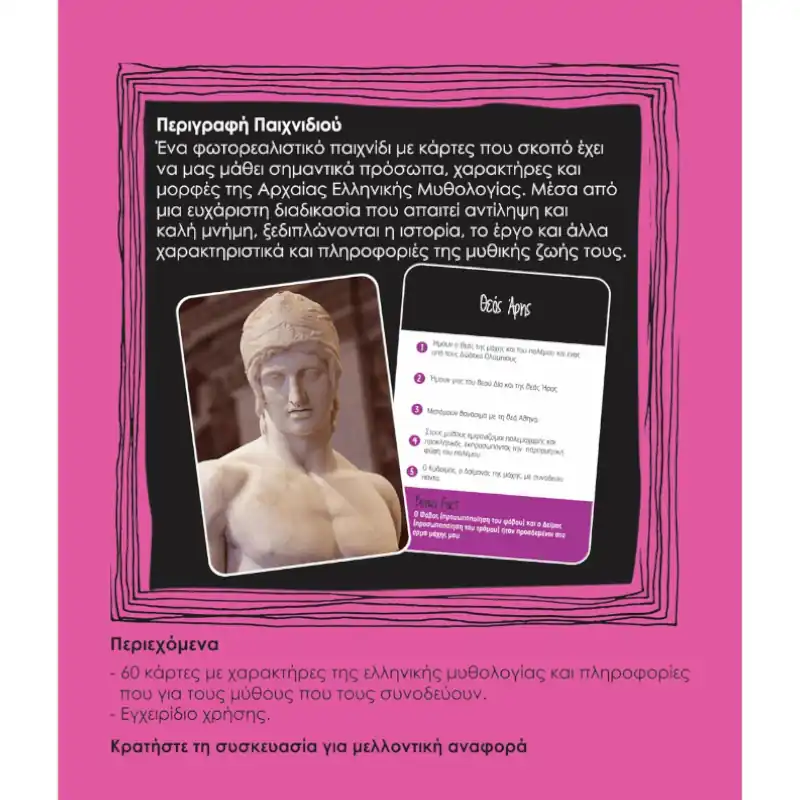 If you are looking for a Greek mythology game, educational knowledge games, card games for children, mythology game, game with gods and heroes, or an educational history game, Learning Cube Greek Mythology is an ideal choice. The game helps develop memory, concentration, and knowledge about ancient Greece.