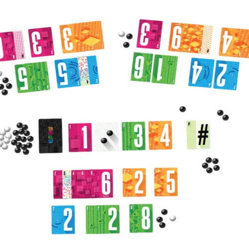 Players can press their luck to draw more cards and use money to buy additional cards in their attempt to create the longest sequence of numbers in each color. When valuable wildcards appear from the deck, players compete in auctions to acquire them to fill the gaps in their sequences.