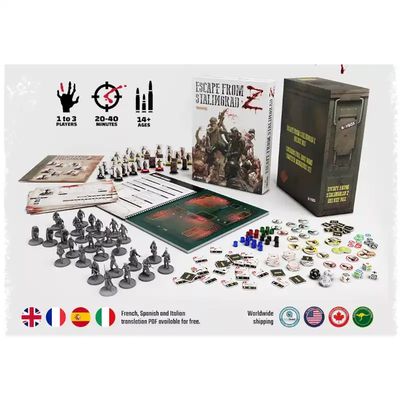Αν αναζητάς ένα επιτραπέζιο με ζόμπι, ένα συνεργατικό παιχνίδι Β’ Παγκοσμίου Πολέμου, ή απλώς μια καμπάνια γεμάτη ένταση, τότε το Escape from Stalingrad Z είναι η απόλυτη επιλογή. Ανακάλυψέ το τώρα και πάλεψε για την επιβίωσή σου μέσα στα ερείπια του Στάλινγκραντ!