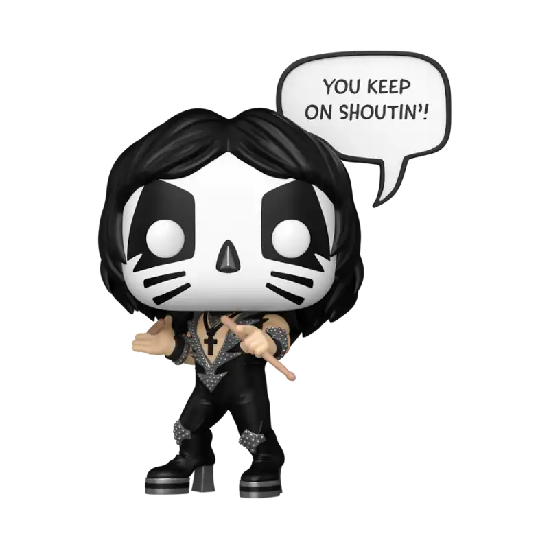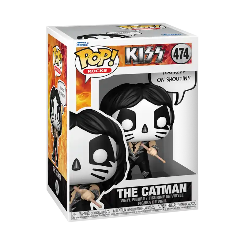 Η συλλεκτική φιγούρα Funko Pop The Catman KISS (#474) έρχεται να ολοκληρώσει τη σειρά Funko Pop Rocks με ένα από τα πιο εμβληματικά μέλη των KISS. Ο The Catman, ο drummer της μπάντας, με το χαρακτηριστικό του μακιγιάζ σε στυλ γάτας και τα drumsticks στα χέρια, ζωντανεύει ξανά μέσα από αυτή τη μοναδική vinyl φιγούρα Funko.