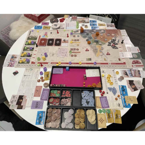 Καθοδηγείστε συλλογικά την Εταιρεία εξασφαλίζοντας θέσεις εξουσίας και μπείτε στο παιχνίδι του κρατικού εμπορικού μονοπωλείου με αυτό το μοναδικό επιτραπέζιο στρατηγικής και οικονομίας !
