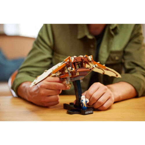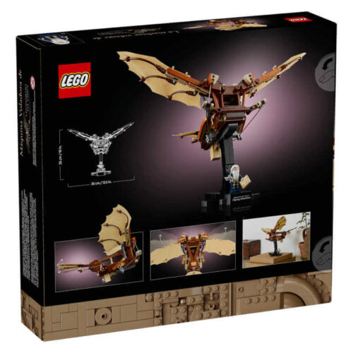 Εξερευνήστε την εξέλιξη της αεροναυτικής καινοτομίας ή κάντε δώρο σε έναν λάτρη της ιστορίας το σετ κατασκευών LEGO® Icons Η ιπτάμενη μηχανή του Λεονάρντο ντα Βίντσι, για το σπίτι και το γραφείο για ενήλικες. Κατασκευάστε ένα λεπτομερές μοντέλο του οραματιστικού ορνιθόπτερου του da Vinci που διαθέτει ένα ανοιχτό πλαίσιο αέρα με πτερύγια καλυμμένα με ύφασμα που οδηγούνται από μια ορατή αλληλεπίδραση χορδών, μεντεσέδων και τροχαλιών. Αυτό το συναρπαστικό κεντρικό κομμάτι περιλαμβάνει μια βάση επίδειξης με μια προσθαφαιρούμενη μίνι φιγούρα του Λεονάρντο ντα Βίντσι που κρατάει μια πένα και ένα σκίτσο.