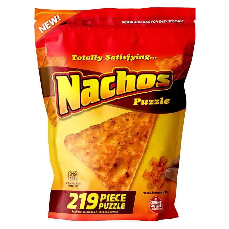 Το Nachos Puzzle της Chunky Custard είναι ένα μοναδικό, αστείο και απολαυστικά… παραπλανητικό παζλ 219 κομματιών που μοιάζει ακριβώς με σακουλάκι γεμάτο τραγανά τριγωνικά νάτσος! Αν ψάχνεις το απόλυτο αστείο παζλ ή ένα πρωτότυπο δώρο για φίλους, το παζλ αυτό είναι η πιο πικάντικη επιλογή.