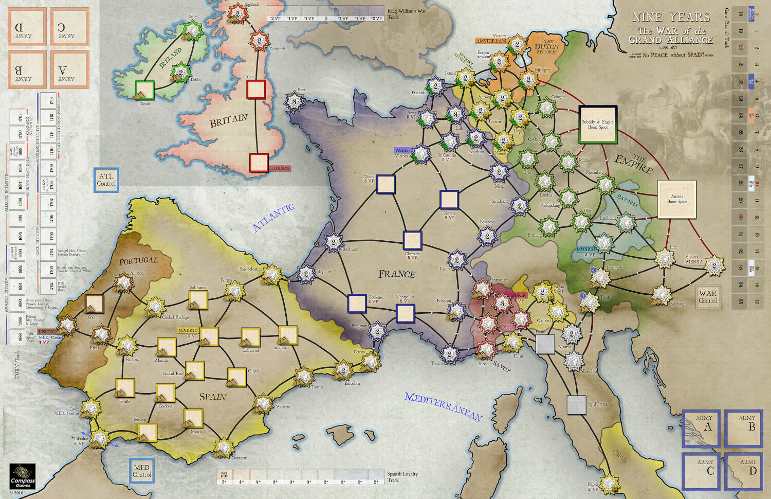 Ιδανικό για φανατικούς του wargaming, το παιχνίδι αυτό δίνει την ευκαιρία στους παίκτες να ξαναγράψουν την ιστορία της Ευρώπης από το 1688 έως το 1697 – και ακόμα παραπέρα με τον συνδυασμένο χάρτη έως το 1713. Με το βάθος και την ιστορικότητα που περιμένεις από την Compass Games, αυτό το παιχνίδι είναι απαραίτητο για κάθε συλλέκτη επιτραπέζιων πολέμου.