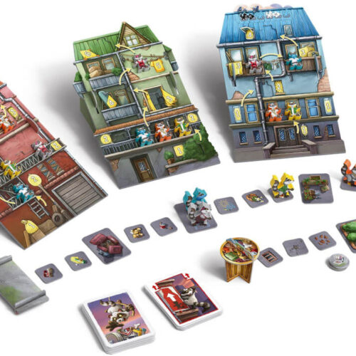 Στο Racoon Robbers, οι παίκτες και το ρακούν αφεντικό τους προσπαθούν να φτάσουν πρώτοι στον χρυσό κάδο απορριμμάτων. Για να το πετύχουν αυτό, σκαρφαλώνουν στα τρισδιάστατα σπίτια με τα ρακούν τους χρησιμοποιώντας κάρτες. Για τα ριψοκίνδυνα άλματα απονέμονται πόντοι, οι οποίοι μπορούν να χρησιμοποιηθούν για να μετακινήσουν το αφεντικό ρακούν. Αλλά προσέξτε, όσο χαριτωμένα και αν φαίνονται τα ρακούν, όταν τους δίνεται η ευκαιρία, σπρώχνουν τα αντίπαλα ρακούν από το δρόμο χωρίς δισταγμό. Τόσο το καλύτερο αν αυτό προκαλεί άλλα ρακούν να πέσουν μαζί τους και να ανοίξουν το δρόμο.