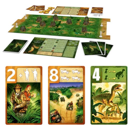 Το Raptor είναι ένα επιτραπέζιο παιχνίδι με κάρτες, με παιχνίδι τακτικής και κάποια διπλή μαντεψιά. Οι παίκτες χρησιμοποιούν τις κάρτες τους για να μετακινήσουν τα πιόνια τους (επιστήμονες από τη μία πλευρά, μητέρα και μωρά αρπακτικά από την άλλη) στο ταμπλό. Σε κάθε γύρο, ο παίκτης που έπαιξε την κάρτα με τη χαμηλότερη αξία μπορεί να χρησιμοποιήσει την αντίστοιχη ενέργεια. Από την άλλη, ο αντίπαλός του έχει πόντους κίνησης/επίθεσης ίσους με τη διαφορά μεταξύ των αξιών των δύο καρτών. Οι επιστήμονες μπορούν να χρησιμοποιήσουν τα πυρά. Μπορούν επίσης να κινηθούν με τζιπ στις ράγες και μπορούν ακόμη και να καλέσουν ενισχύσεις. Η μαμά ραπτορ μπορεί να κρυφτεί στους θάμνους, να φωνάξει για να τρομάξει τους επιστήμονες και να καλέσει τα μωρά της.