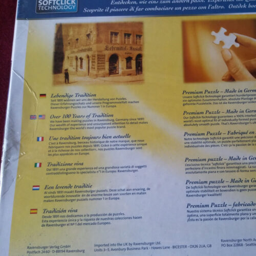 Κατασκευασμένο με την πατενταρισμένη Softclick Technology, τα κομμάτια ταιριάζουν τέλεια και προσφέρουν μοναδική αίσθηση ποιότητας. Οι διαστάσεις του παζλ όταν ολοκληρωθεί είναι 84 x 60 εκ., ενώ η συσκευασία του είναι ιδανικά σχεδιασμένη με διαστάσεις 34 x 26 x 5 εκ. και βάρος περίπου 920 γρ.