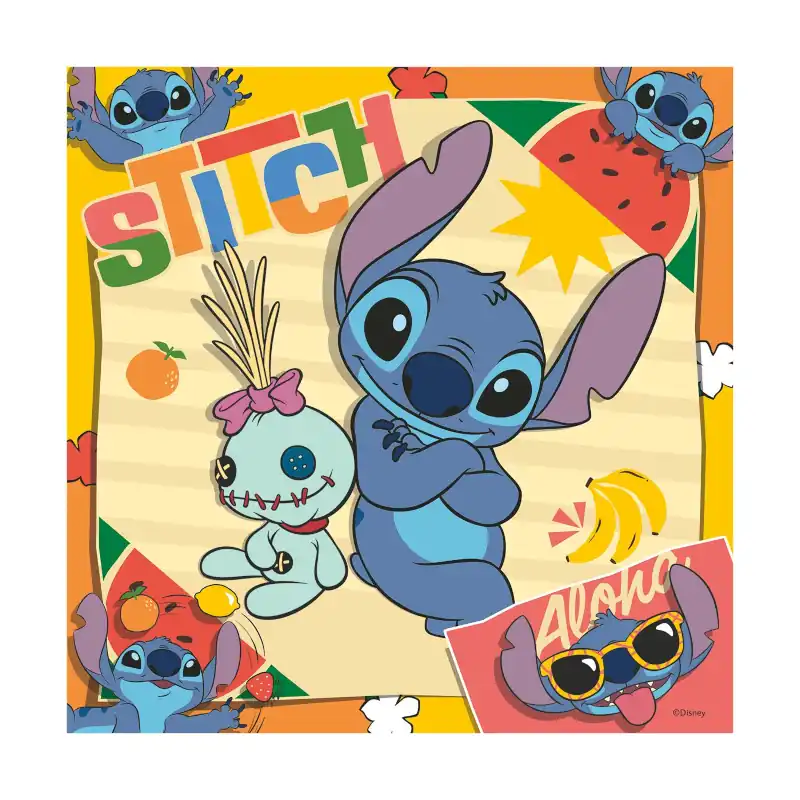 Το Stitch Puzzle Disney Ravensburger περιλαμβάνει 3 παζλ των 49 κομματιών το καθένα, με πολύχρωμα σχέδια που αποτυπώνουν τον Stitch σε καλοκαιρινή διάθεση Aloha, μαζί με φρούτα, ήλιο και θετική ενέργεια. Είναι ιδανικό για παιδιά ηλικίας 5+ ετών, καθώς ενισχύει τη συγκέντρωση, την παρατηρητικότητα και τη λογική σκέψη, ενώ παράλληλα αποτελεί μια διασκεδαστική δραστηριότητα για όλη την οικογένεια.