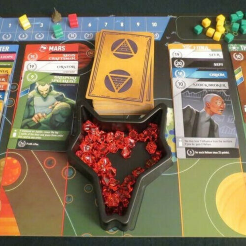 Μπείτε στο φουτουριστικό σύμπαν του Red Rising, βασισμένο στη σειρά βιβλίων του Pierce Brown. Αυτό το επιτραπέζιο διαδραματίζεται σε μια δυστοπική κοινωνία που χωρίζεται σε δεκατέσσερις κάστες. Αντιπροσωπεύετε έναν οίκο που προσπαθεί να ανέλθει στην εξουσία. Και αυτό καθώς συγκεντρώνετε μια σειρά από οπαδούς (που αντιπροσωπεύονται από το χέρι των καρτών σας). Θα σπάσετε τις αλυσίδες της Κοινωνίας ή θα αγκαλιάσετε την κυριαρχία των Χρυσών;