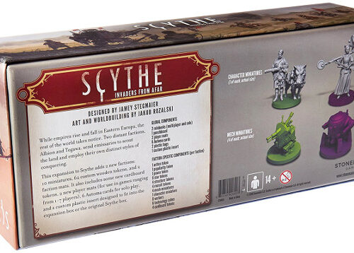 Σε αυτήν την επέκταση του Scythe προστίθενται 2 νέες φατρίες. 10 μινιατούρες, 62 ξύλινοι δείκτες προσαρμοζόμενοι και 2 ταμπλό για τις 2 φατρίες. Η επέκταση περιλαμβάνει επιπλέον καινούργιους χάρτινους δείκτες, 2 καινούργια ταμπλό ενεργειών για τους παίκτες , 6 κάρτες Automa. Τέλος, έχει ένα πλαστικό ένθετο ειδικά σχεδιασμένο για να προσαρμόζεται στο κουτί των εισβολέων από το Afar ή στο κουτί του βασικού παιχνιδιού.