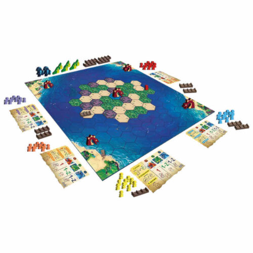 Το Survive The Island είναι ένα σκληρό παιχνίδι στο οποίο οι παίκτες προσπαθούν να εκκενώσουν τους τυχοδιώκτες τους – ειδικά εκείνους που έχουν μεγάλη αξία – από ένα νησί που βυθίζεται για να μεγιστοποιήσουν το σκορ τους. Ένα νησί αποτελούμενο από σαράντα εξάγωνα βυθίζεται αργά στον ωκεανό καθώς αφαιρούνται πλακίδια από το ταμπλό. Κάθε παίκτης ελέγχει δέκα ανθρώπους (με αξία 1-5), τους οποίους προσπαθεί να μετακινήσει προς την ασφάλεια των γύρω νησιών, προτού τελικά εκραγούν τα ηφαίστεια του κύριου νησιού. Οι παίκτες μπορούν είτε να κολυμπήσουν είτε να χρησιμοποιήσουν σχεδίες για να ταξιδέψουν, αλλά πρέπει να αποφύγουν θαλάσσια φίδια, kaiju και καρχαρίες στο δρόμο τους προς την ασφάλεια.