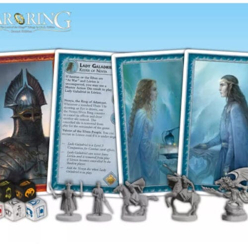 Περιλαμβάνονται νέα ειδικά ζάρια δράσης. Ζάρια Φύλακες Δαχτυλιδιών των Ξωτικών για τον παίκτη των Ελεύθερων Λαών και ζάρια Μικρότερων Μινιόν για τον παίκτη των Σκιών. Περιλαμβάνονται επίσης νέες εκδόσεις όλων των Συντρόφων της Συντροφιάς του Δαχτυλιδιού!