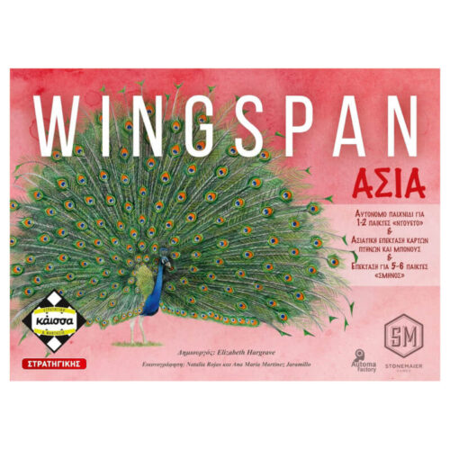 Σε αυτή την επέκταση για το Wingspan, υποδεχόμαστε νέα είδη στους βιοτόπους μας εξερευνώντας τα γεμάτα ζωή, συναρπαστικά και εντυπωσιακά πτηνά της Ασίας. Ένα νέο είδος παιχνιδιού, το Σμήνος, περιλαμβάνεται για να επεκτείνει το βασικό παιχνίδι του Wingspan στους 6 ή 7 παίκτες. Θα βρείτε επίσης και ένα αυτόνομο παιχνίδι για 1 παίκτη (σόλο) ή 2 παίκτες (Ντουέτο).